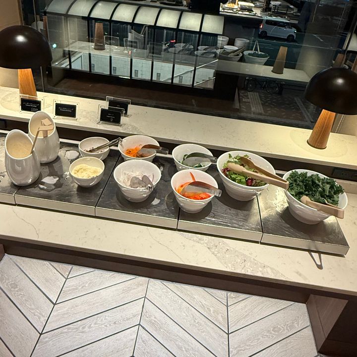 サラダやスープ、一部のフードメニューは、セルフスタイルで好きなだけ食べられるのが嬉しい☺️