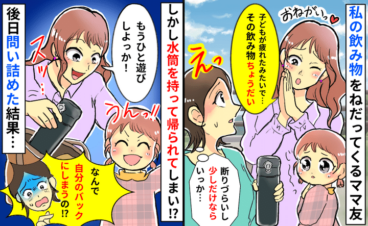 3. 私の水筒の水を子どもと飲んで自分のカバンに入れるママ友「なんで持って帰るの!?」後日問いただすと