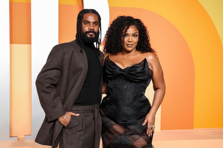 Myke Wright and Lizzo at the 2025 Vanity Fair Oscar Party
