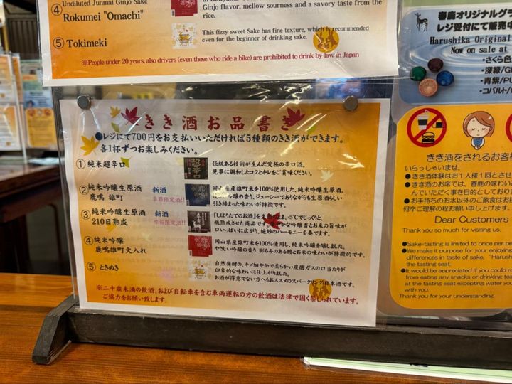 そして、こちらの店舗では数種類の日本酒の飲み比べができます。歴史ある場所で伝統的な日本酒を味わい、お気に入りを見つけてみてはいかがでしょうか。