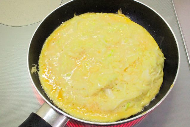 3. 卵の中には…“市販の袋キャベ”たっぷり♡コスパ・タイパ・手間パが叶う「痩せるスペインオムレツ」作ろう