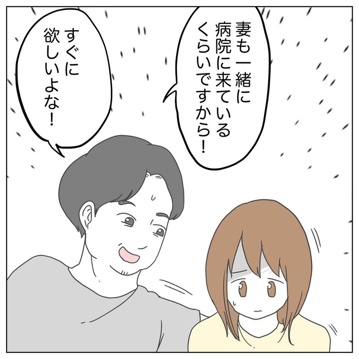 医師はかずやが年齢的に焦る気持ちに共感しつつ、妻であるひかりに不妊治療への思いを聞きます。