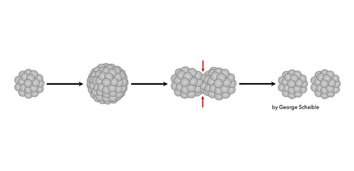 一つのまとまりとして生き、分裂するときも全体で数を倍増させ、その後ふたつの同じ集団に分かれるのです。