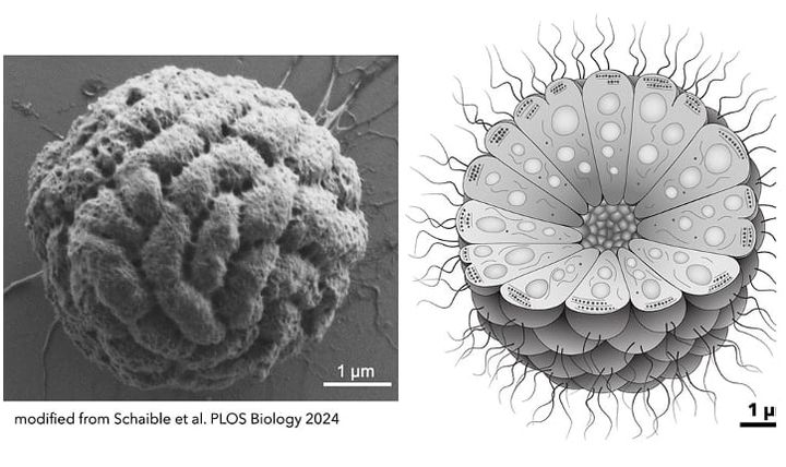 MMBは常に15〜86個の細胞が集まった球形の”コンソーシアム(集団・組織)”という形で存在しており、単細胞生物なのに単独になると生きられないのです。