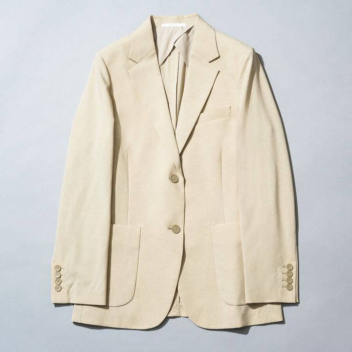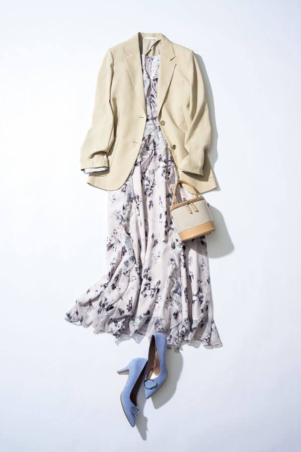 「花柄の色みとなじみよいニュアンスカラーのジャケットを。メンズライクな大きめが◎!」