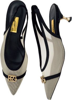 やや低めのヒールでも細い形なら大人顔にもマッチ。シアー素材や金具デザインで足元から色気を醸して。