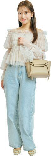 コントラストが強くても負けない顔立ちなので、コーデのアクセントとしてゴージャスで華やかなバッグを合わせても違和感なし。