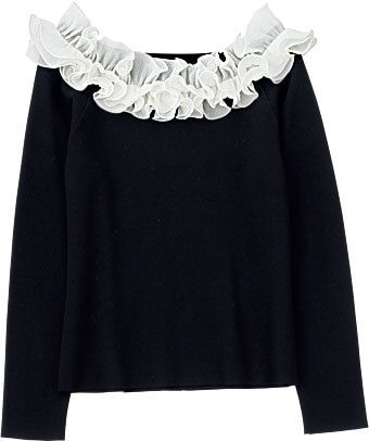 シンプルすぎると物足りなさを感じるため、大きめフリルやリボンなどのディテールが効いたものがベスト。スカーフを身につけて華やかに盛っても。