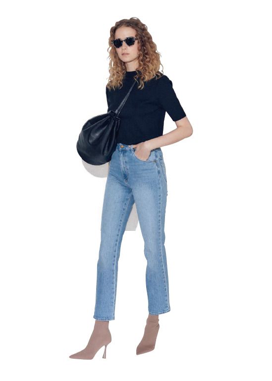色落ちデニムの味わいを黒が引き立て、メンズライクでもこびない女らしさに。ボトムにINしなくてもちょうどいい短めの丈感。 黒ニットトップス/ゲミニー(ウィム ガゼット ルミネ新宿店) デニムパンツ/ROLLA’S(ジャック・オブ・オール・トレーズ プレスルーム)