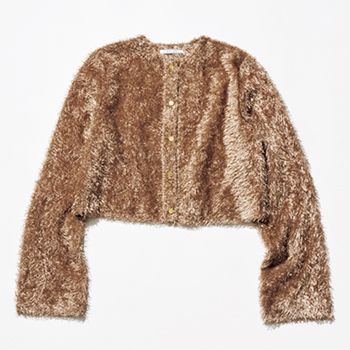 ウールとはまた違う、上質な光沢を放つカットジャカード素材。毛足も短め、丈も短めなので合わせやすく悪目立ちもなし。キャミやタンクなど肌感のあるトップスとあわせて着るのにうってつけ。 ベージュシャギーニット/BEIGE,(オンワード樫山 お客様相談室)