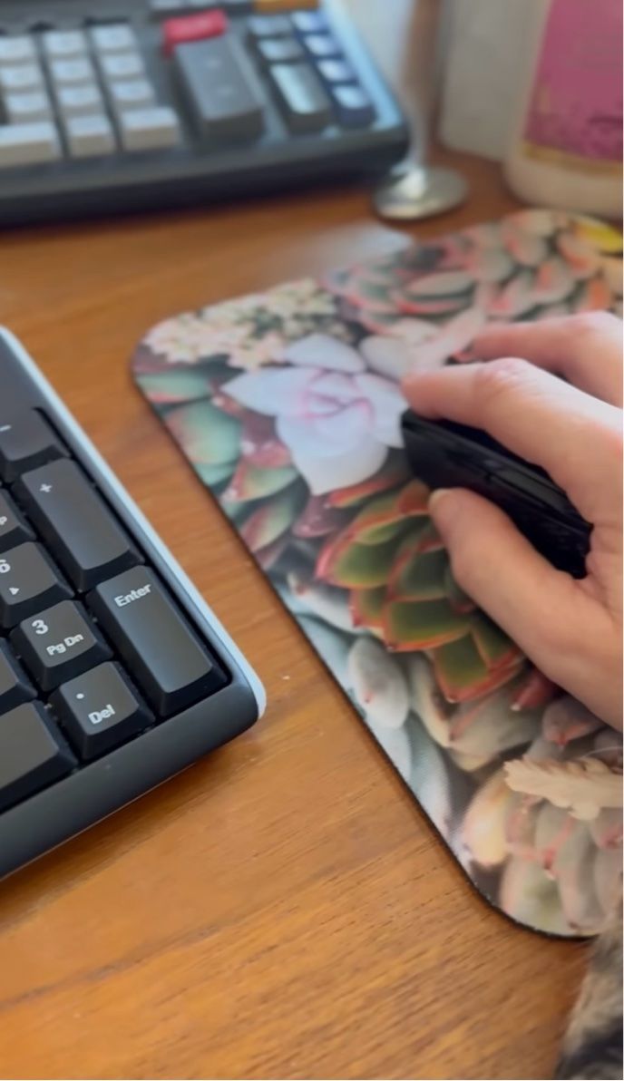 マウスを操作する手を止めて、作業を中断させた女性。 それにはある理由がありました。