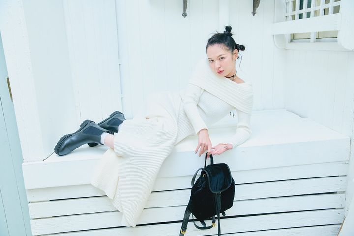 ワンピース¥23,980/リリー ブラウン(リリー ブラウン ルミネエスト新宿店)チョーカー¥19,140/maison HOWL(ロードス)リュック¥17,682/シエンヌブーツ¥27,500/ダイアナ(ダイアナ 銀座本店)ソックス/スタイリスト私物