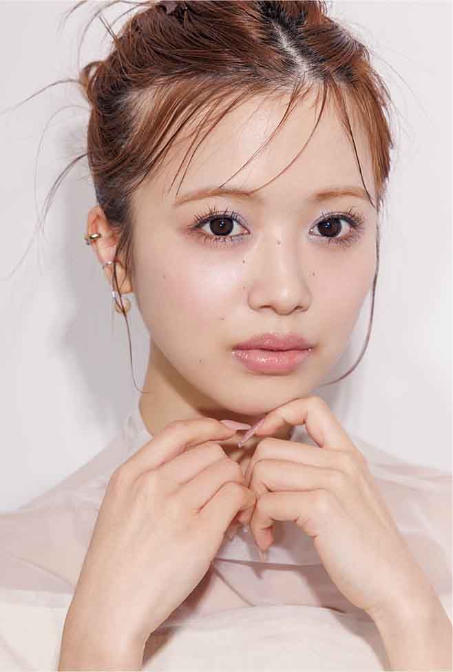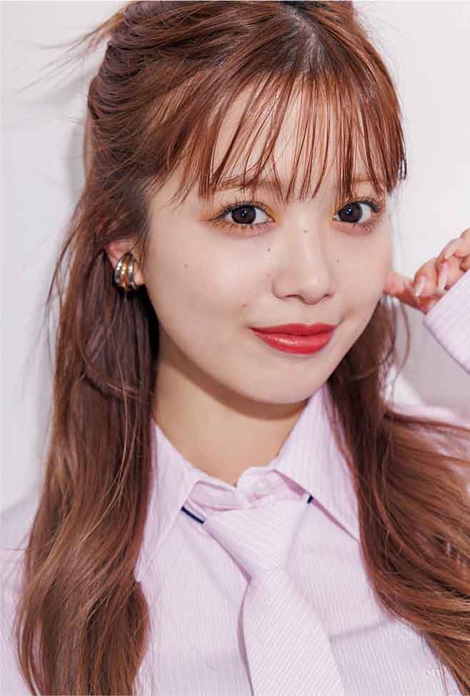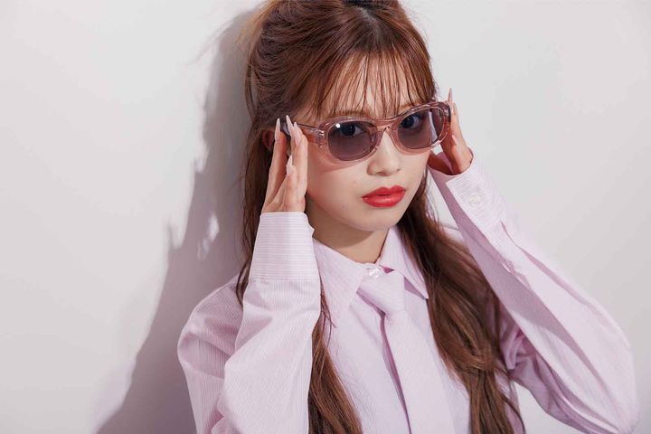 細フレームは、普通のめがね感覚でかけられるからサングラス初心者に◎。カラーグラスのクリア感に合わせ、リップに少し強めのキラキラをプラスするとかわいさがアップ!