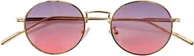 ピンク×パープルのグラデーションレンズに、ゴールドの細フレー ム。