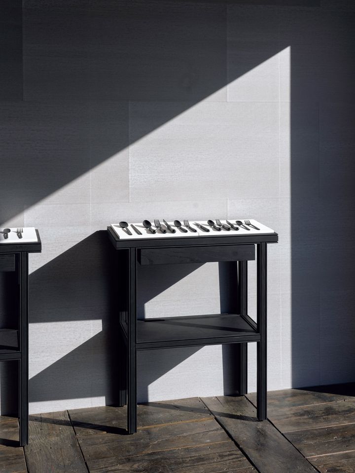 そこで2020年に〈HORANG〉を立ち上げ、まずは倒産した老舗包丁店の職人と協働しナイフを製作。同じステンレスで、と次に作り始めたカトラリーは、今やシグネチャーに。下部に膨らみを持たせ、使った後にテーブルに置いても汚れない、機能性を備えたデザインが話題を呼んだ。