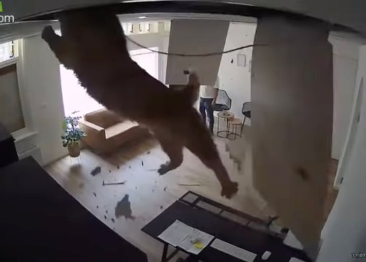 3. 3度目の正直とばかりに登場する猫、天井に3つの大穴開けて