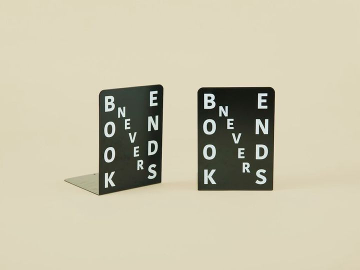 生活においてどこか地味な存在であるブックエンドは、「縁の下の力持ち」のような、なかなか日の目が当たらない日用品です。それもあってか、心をくすぐられるようなデザインのものにあまり出会えずにいました。そんな中、「BOOK NEVER ENDS」のプリントが入ったこのブックエンドを見つけた時は、あまりに気に入ってすぐに〈All-You-Can-Eat Press〉を主宰する松尾由貴さんに連絡してしまったほど。彼女が作る製品には、長年NYで暮らす中での経験や感覚が詰まっていて、ずっと目が離せないのです。ブックエンドという言葉に掛けられたこのメッセージは、電子化へのアンチテーゼのようにも感じます。本や紙は永遠なのです。