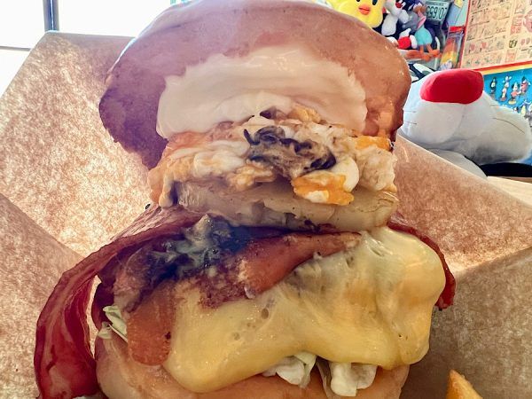 サニーサイドバーガーはチーズにベーコン、パインとエッグのトッピング。ところどころで味が違って大満足!あっという間に食べ終わってしまいました。