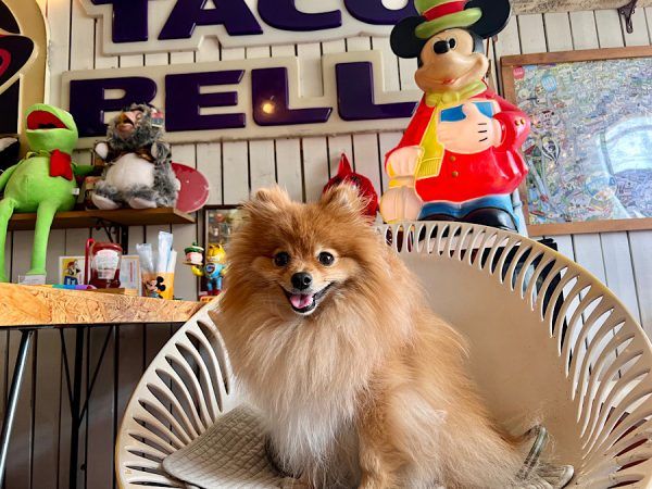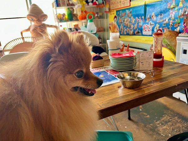 お店の内装が賑やかなのもこちらのお店の特徴。アメリカンな雑貨が所狭しと並ぶ様子は、見ているだけで楽しくなりました!一方テーブル席は広いので、私が食事をしている間も愛犬は隣で伏せてくつろいでいました。