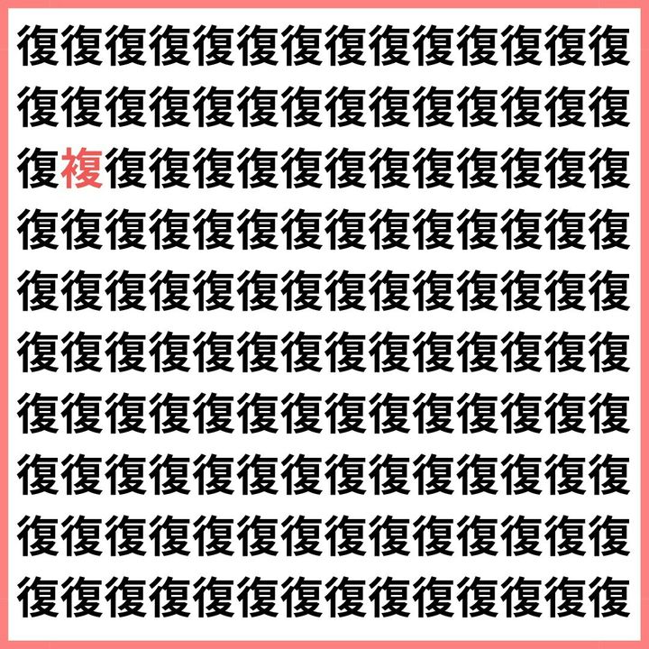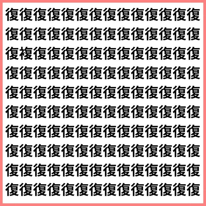 たくさんの「復」の中に、1文字だけ違う漢字が混ざっています。