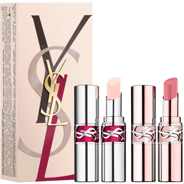YSL 人気リップシリーズ「YSL LOVESHINE」から、2つのツヤをセットに。高発色の弾けるキャンディカラーを放つ、グロッシーな“シロップ”ツヤの「YSL ラブシャイン キャンディグレーズ」からは、透明色のトーンアッププランパーの#2。彩度低めの血色カラーを放つ、湿度を纏ったような“生”ツヤの「YSL ラブシャイン キャンディ グロウ バーム」からは、シグネチャーカラーのミュートピンクの#44B。人気リップのペアを母の日限定デザインのギフトボックスにセット。