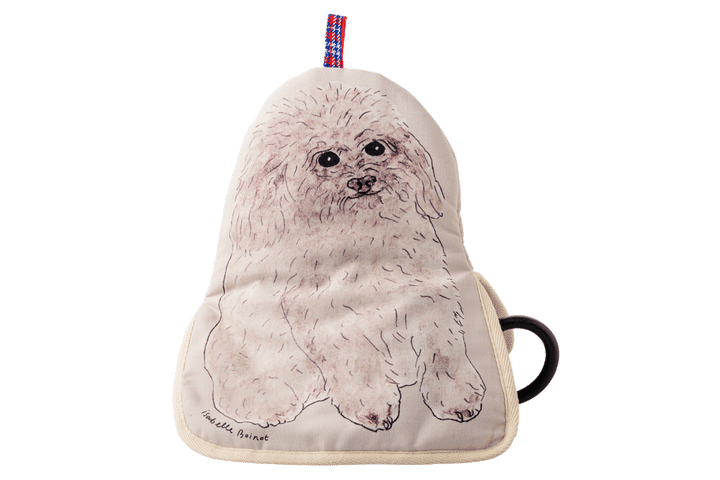 きゅるんとした瞳にふわふわとした毛。愛嬌たっぷりの犬のイラストは、フランス人アーティスト、イザベル・ボワノによる作品。身体のシルエットに沿ったフォルムのカバーをティーポットにかぶせると、実際に犬がたたずんでいるかのよう。背面に描かれたうしろ姿まで愛おしい。