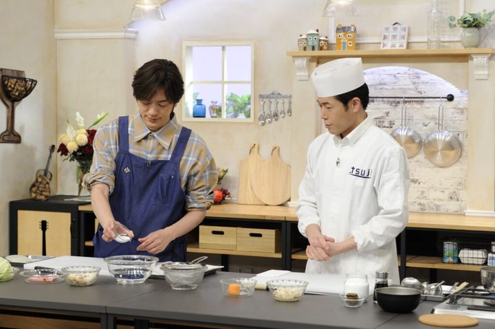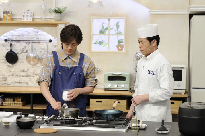 そんなプロ技を、先生の指導のもと、さっそく実践するDAIGO。シーフードを「ちょっと“半凍り”ですね」と言いながら鍋に入れているとき、会心のダジャレがひらめいたよう。「半凍り圭(ハンゴオリケイ)だ!半凍り圭!」とはしゃぎ始めた。