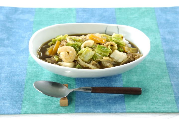 この日のテーマは「久しぶりにカレー」。ちゃんぽんスープをベースにした和風のアレンジカレー「ちゃんぽんカレー」を辻調理師専門学校の長谷川晃先生から教わった。