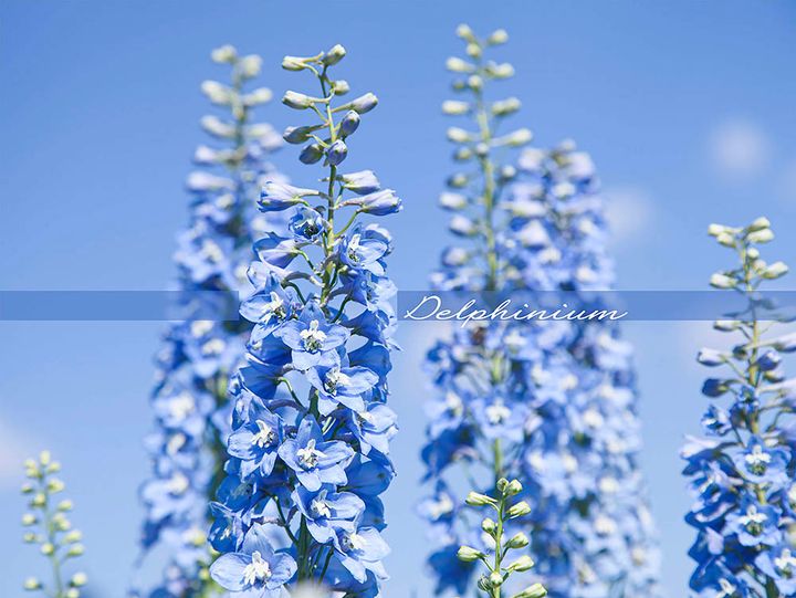 デルフィニウムという名前の由来は、ギリシア語でイルカを意味する「Delphis」。つぼみの形がイルカに似ていることからこの名が付いたといわれています。