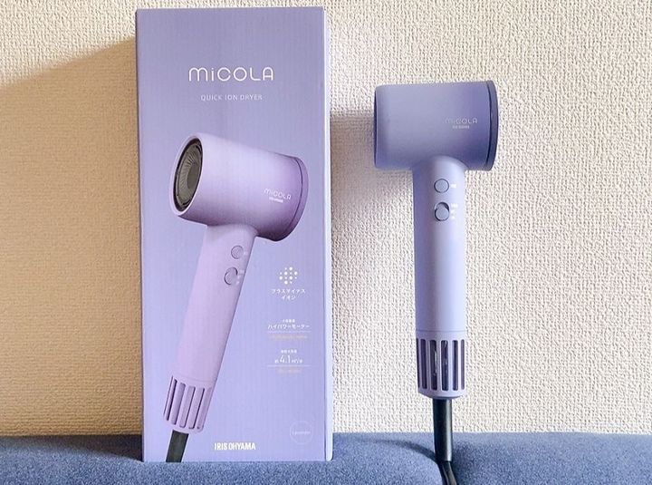 私もリッチなシャンプーやトリートメント、頭皮用エッセンスなんかも取り入れて、髪の変化にあらがおうとしていますが、そういえばドライヤーはアップデートしていない⁉︎ という事実に気がついたのです。そして、ドライヤーを見直したいと思っていたところで目に留まったのがアイリスオーヤマのMiCOLA「クイックイオンドライヤー」の情報。これは朗報! と思い、さっそくお試しさせていただいたところ、見た目がかわいいだけじゃなく、とってもパワフルで短時間で髪を乾かすことができたんです! しかも、パサパサ髪もしっとり仕上がるというすばらしさ。