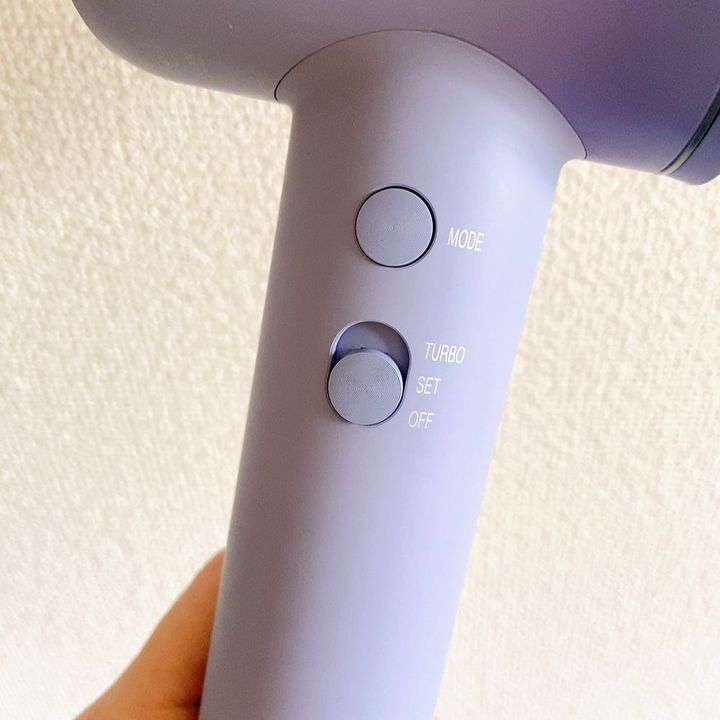 風量は「TURBO」と「SET」の2段階に調整でき、洗髪後だけでなくヘアセットにも使いやすいのがよいところ。