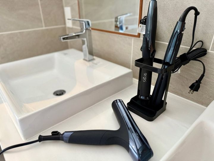 全室にリファのシャワーヘッド、ドライヤー、ストレートヘアアイロン、カールアイロンを完備。私はいつもリファを持参する派なので、ここでは荷物をコンパクトにできてよかった。