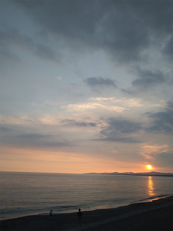 波打ち際で遊んでいる子どもや、静かに景色を楽しむ人たちの姿がありました。