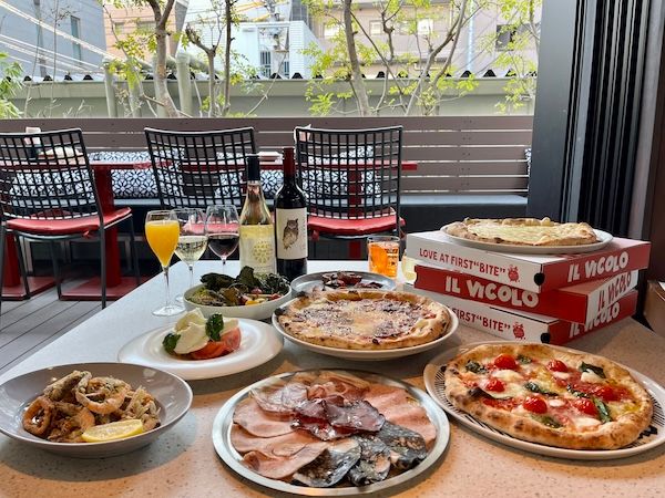 ピザ激戦区の中目黒に2025年3月1日にオープンしたばかりの「PIZZERIA IL VICOLO(ピッツェリア イル ヴィコロ)」。賑やかなエリアの路地に佇むガラス張りの隠れ家のような店構え。久々に集まる友人たちとの会食、ワンちゃん連れのランチなど多様な場面で使えそうです。
