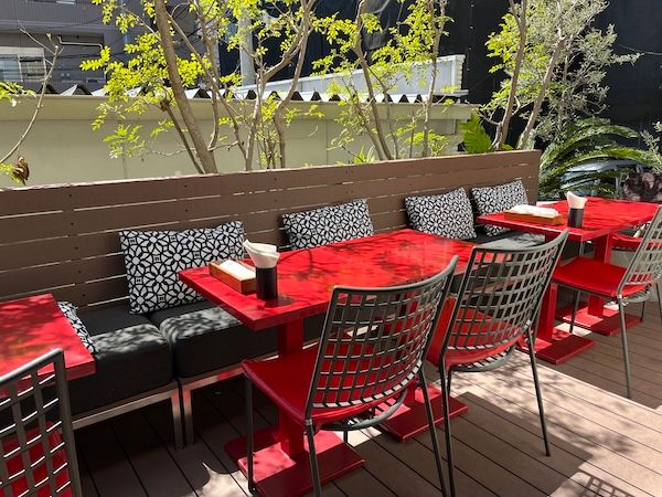おしゃれなテラス席に、次回は犬連れの娘と伺おう。ランチコーヒーは220円!しかもおいしくて大満足です!