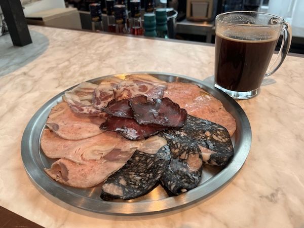 ピザ以外のメニューも、素材の良さに炭火を活かしたメニューがいろいろ。熟練のハム職人が丁寧に仕込むワインの友「シャルキトリー・プラッター」は、3種(FOR 1・715円)5種(FOR 1・990円)。