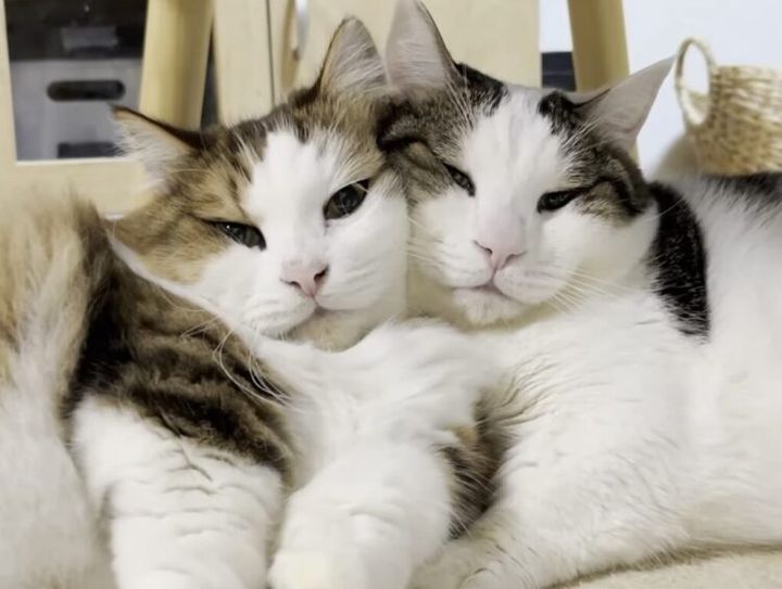 顔もポーズもそっくり!猫親子の仲良しくつろぎタイム