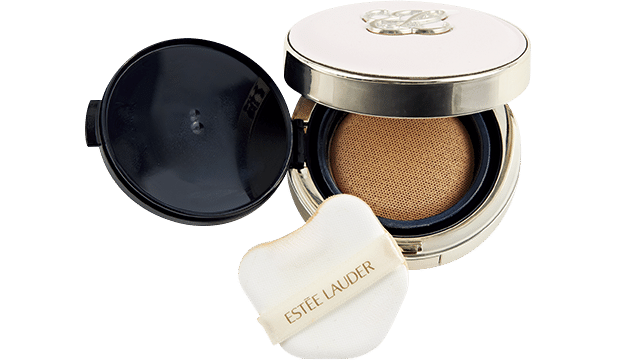 エスティ ローダーとラデュレの限定コラボパッケージが可愛いクッションファンデ。目の下のラインに沿う形状のパフが使い心地いい。