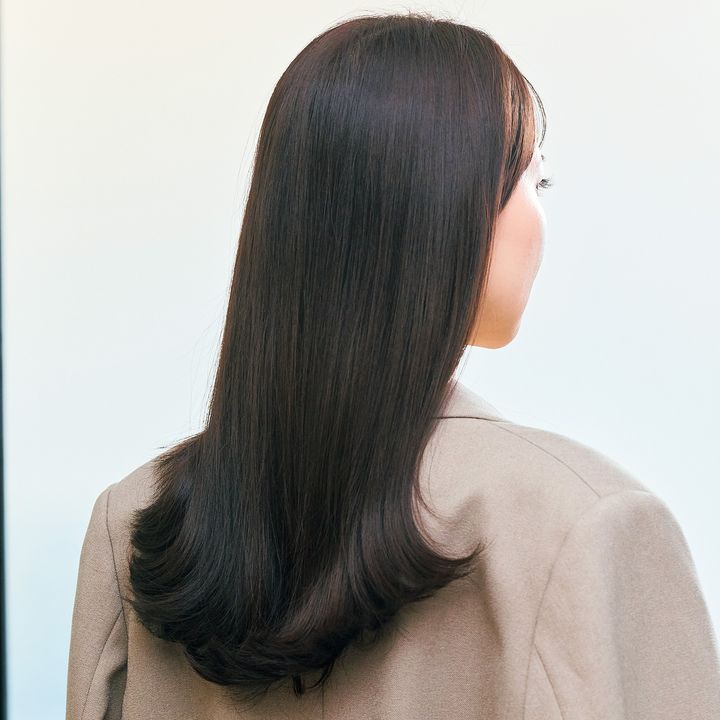 仕事の場面ではきちんとした印象を相手に与えることが何よりも大切。そのためには、清潔感と知的さのあるストレートヘアが正解です。シンプルすぎずに、毛先の外ハネでフレンドリーさも加えて好感度を上げるひと手間も大切。
