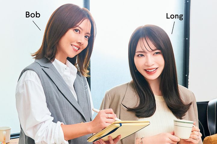 〈衣装クレジット〉【ロング】ジャケット¥15,400(アパートバイ/アダストリア)半袖ニット¥9,350(ステートオブマインド/ゲストリスト)ピアス¥2,970リング¥1,980(ともにアネモネ/サンポークリエイト)ブレスレット¥8,800(アビステ)バッグ¥50,000(バナナ・リパブリック)【ボブ】ジレ¥44,000(ミドラ/ジョワイユ)シャツ¥14,000(バナナ・リパブリック)時計¥40,700リング¥37,400(ともにココシュニック)