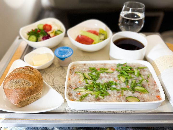 今回は、ラウンジでも食事をしてしまっていたので、軽めのお粥をチョイスしました。