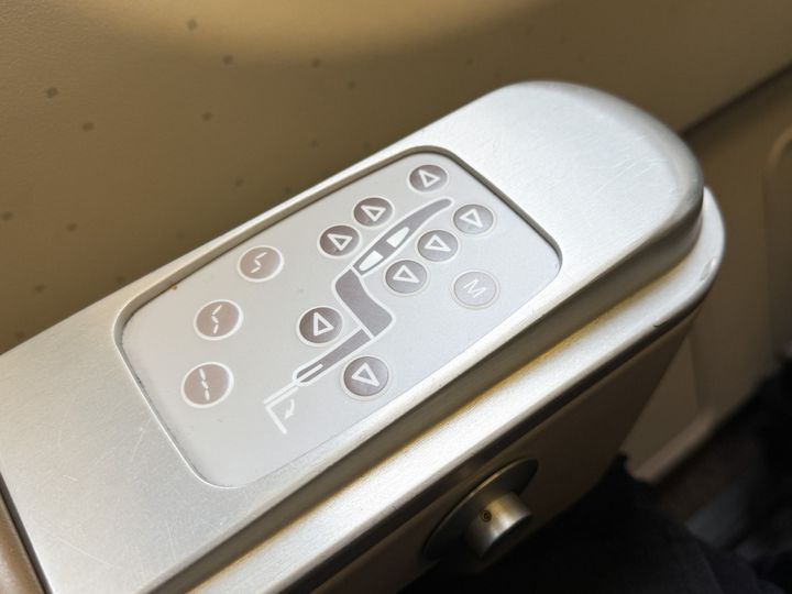 リクライニングの角度も細かく調整できるため、自分好みの姿勢で快適に過ごせます。最新機材ではないものの、ビジネスクラスなので、シートそのものの快適性は高めです。