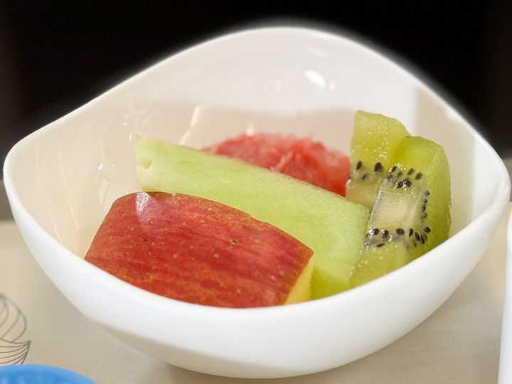 サラダやフルーツも新鮮で、パンもあたたかくてふわふわ。とてもおいしくて、あっという間に完食しました!