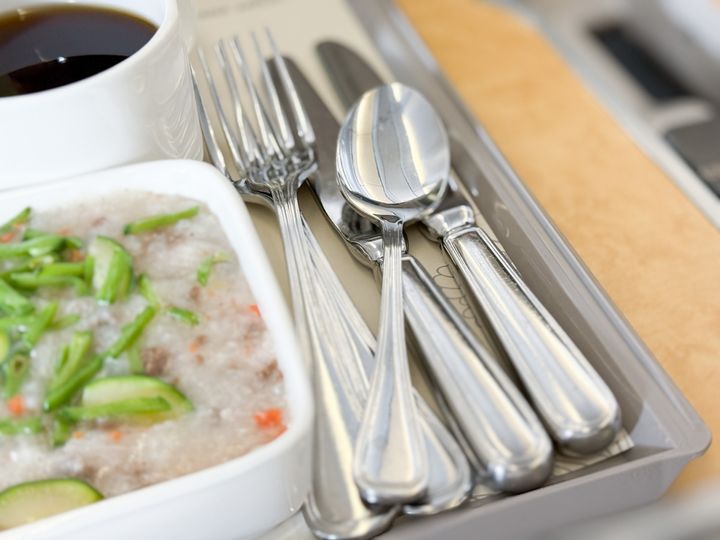 ビジネスクラスらしいしっかりとしたカトラリーも高級感があって◎。