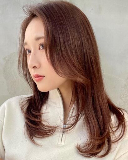 小顔感を高めるには、顔周りのレイヤーと前髪の作り方がカギ。フェイスラインに沿ったレイヤーを入れることで、顔の輪郭をさりげなくカバーしましょう。