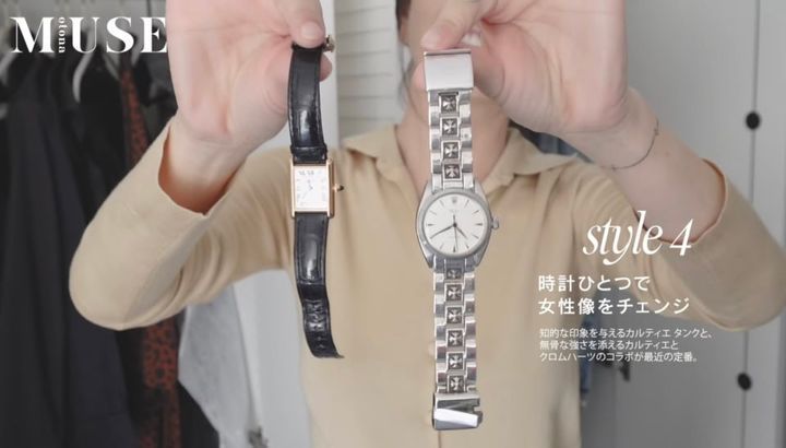 印象の異なる2本のカルティエの腕時計。知的でエレガンスな印象を与えるカルティエのタンクと、無骨な存在感のあるカルティエ×クロムハーツのコラボが最近の定番。