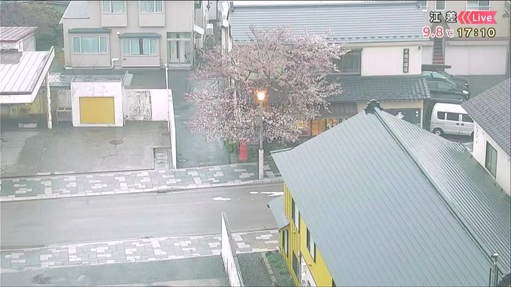 江差の商店の前のサクラの木は結構咲いています。見ごろになってますね。ただ雨で路面は濡れています。江差はあす24日(木)も雲が広がりますが、天気の崩れはないので、春を探しに外を歩くのもいいかもしれません。