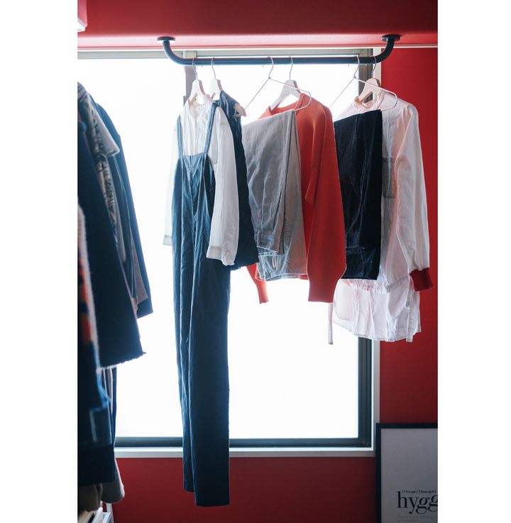 以前は仕事に行く前に何を着るか、かなり迷っていたそう。そこで、シャツとパンツを3パターンほどコーディネートして、仕事の日の定番服に。「服選びで迷わなくなり、朝のバタバタがずいぶん減りました」。