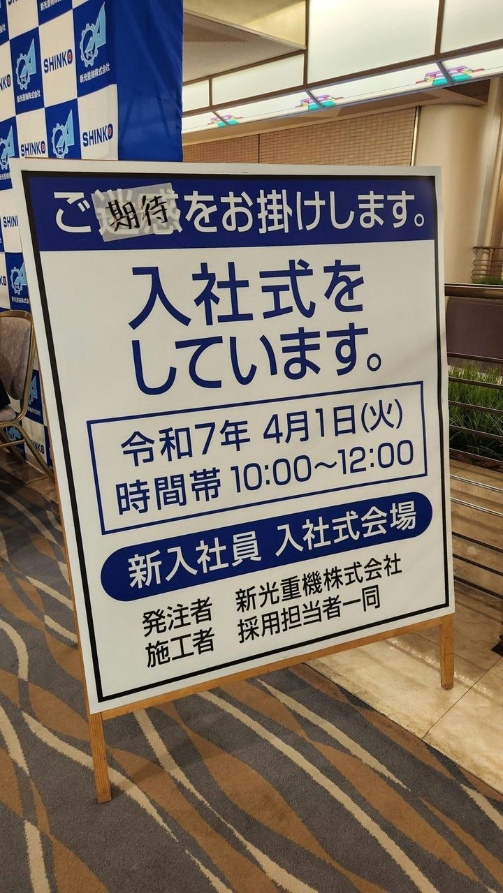 投稿者の新光重機株式会社【公式】建機レンタルさんは、入社式をするにあたり、新入社員を歓迎するために粋な演出を考えました。