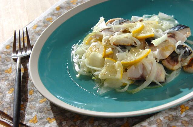 焼いた塩サバをすし酢でベースのマリネ液で和えるイタリアンなレシピです。レモンの酸味でさっぱり食べられます。白ワインのおともにおすすめです。